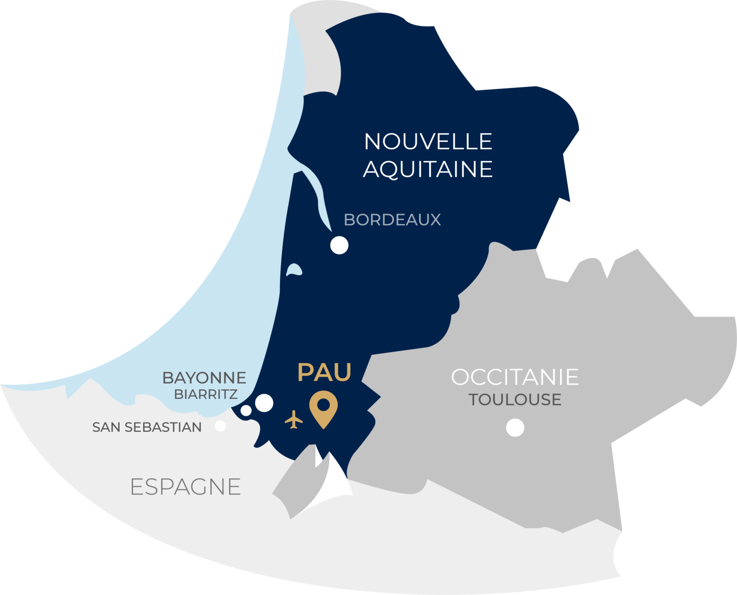 • Pau, Tarbes, Toulouse, Mont de Marsan, Dax, Bordeaux